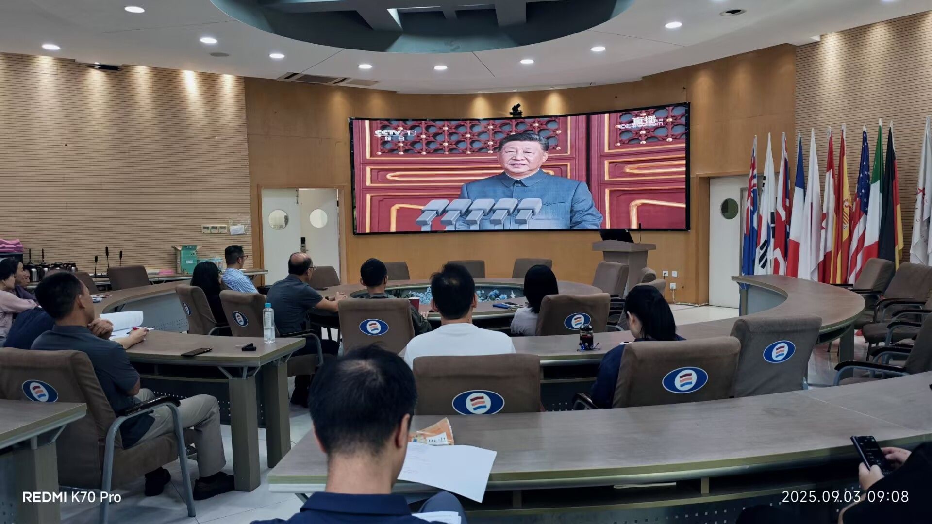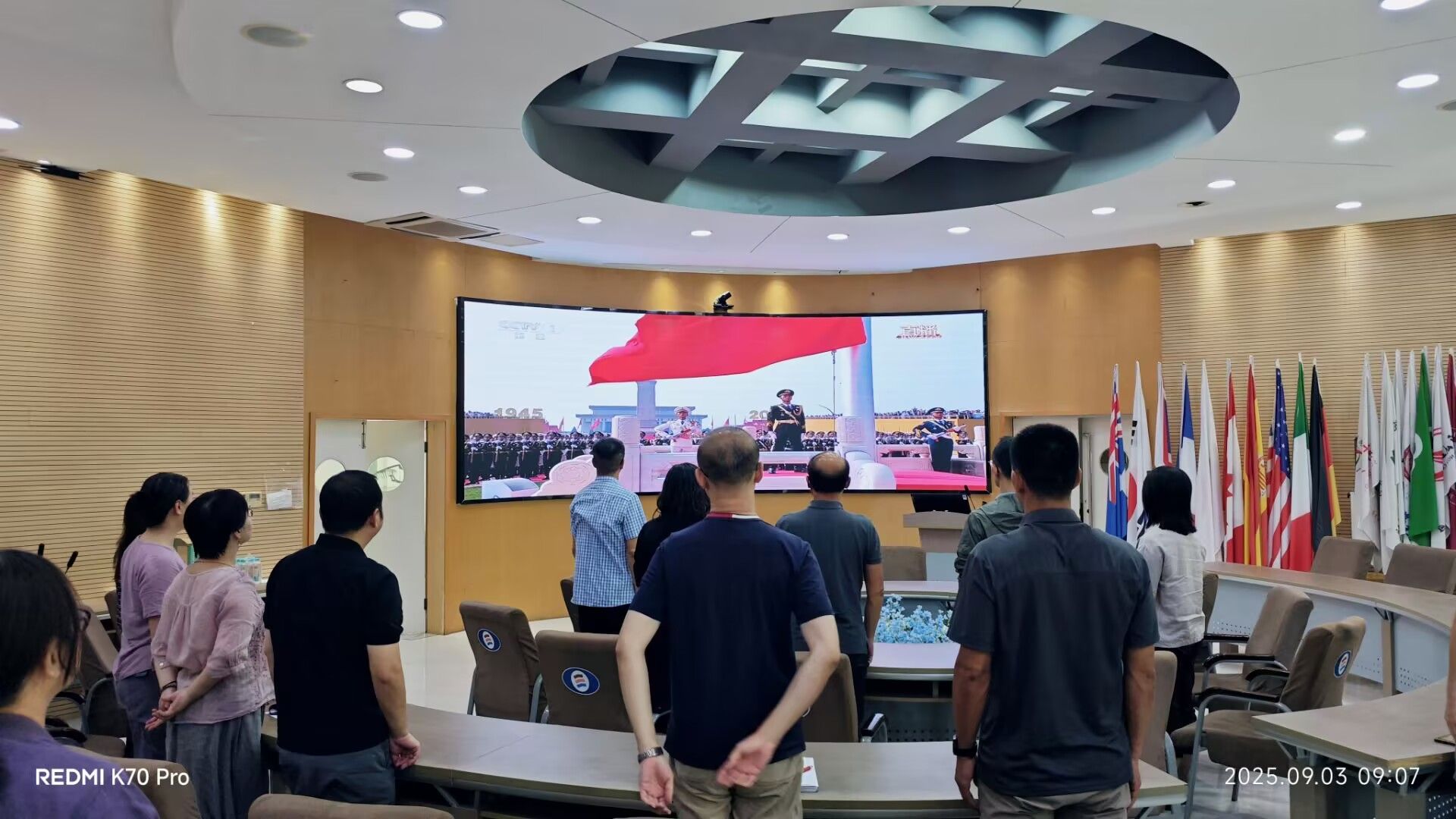 2025年9月3日,纪念中国人民抗日战争暨世界反法西斯战争胜利80周年大会在北京天安门广场隆重举行。习近平总书记发表重要讲话,并检阅受阅部队。三中党委组织部分党员集中观看纪念大会及阅兵式实况,共同回顾历史、缅怀先烈,感受伟大祖国的强大力量,为实现中华民族伟大复兴的中国梦凝聚磅礴精神动力,向伟大的中国人民抗日战争暨世界反法西斯战争胜利 80 周年致敬!