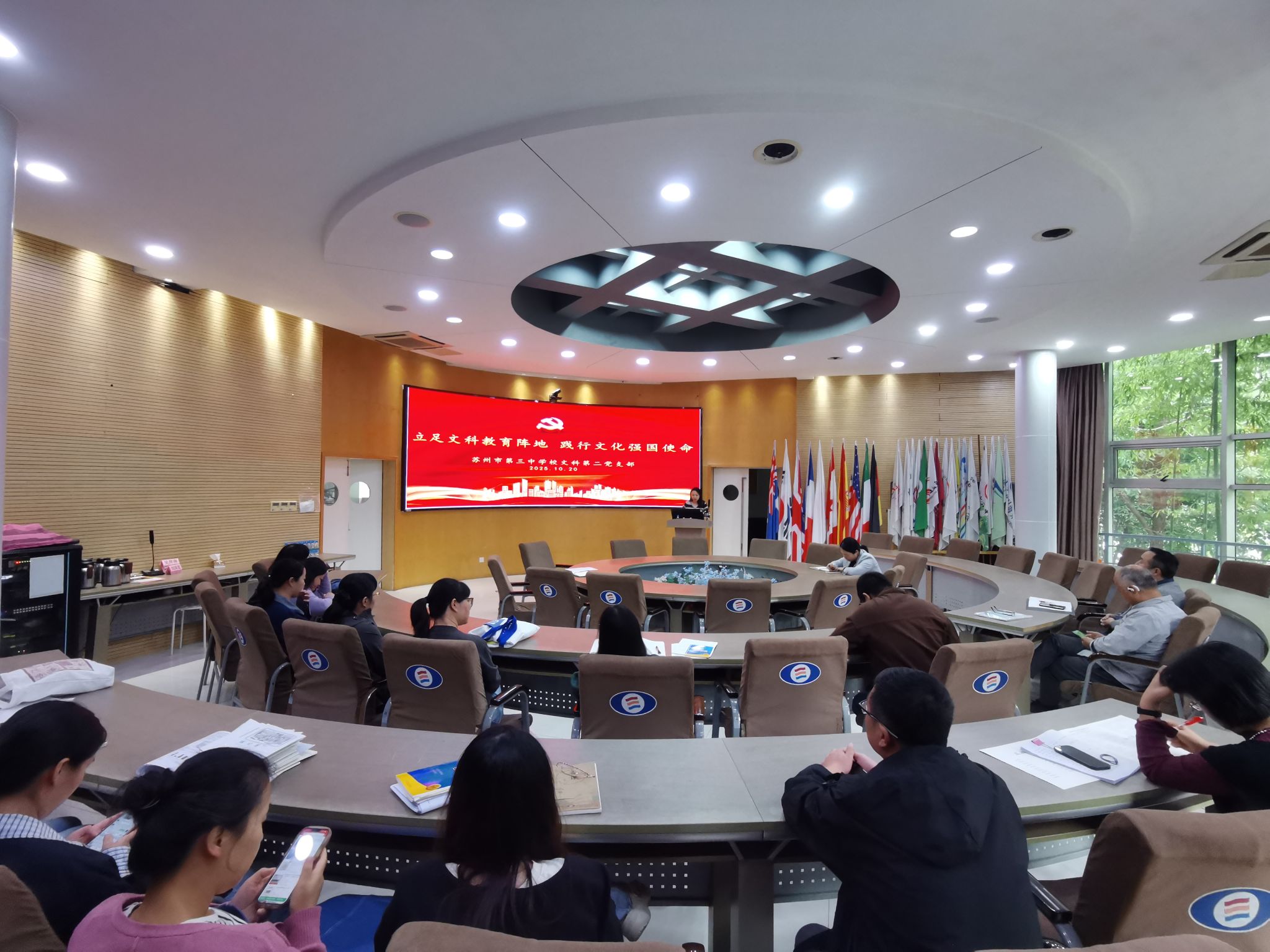 本月文科二支部主题党日活动的主题是“立足文科教育阵地 践行文化强国使命”。