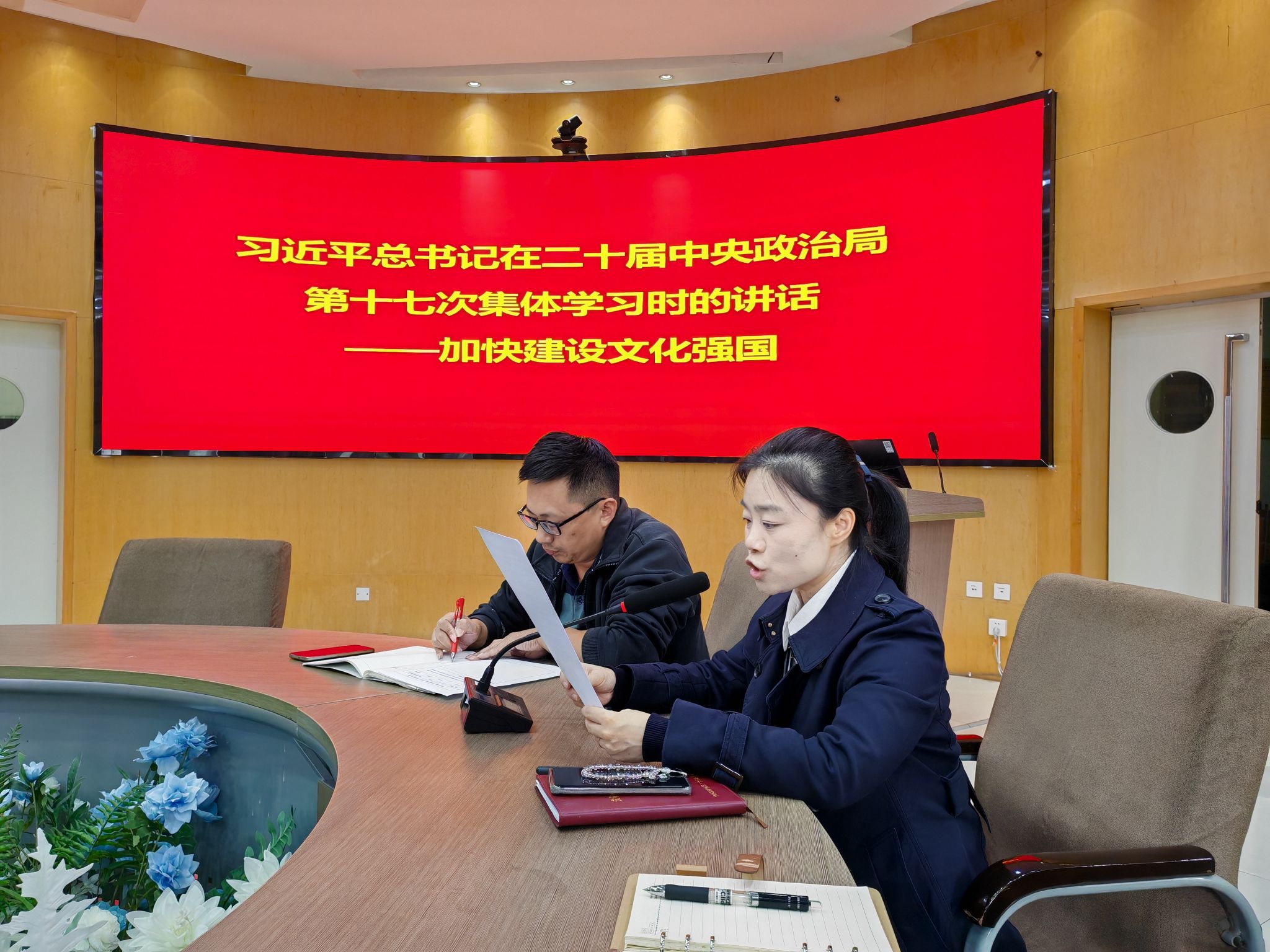 2、支部宣传委员易雯倩领学《习近平总书记在二十届中央政治局第十七次集体学习时的讲话——加快建设文化强国》。2025年4月16日出版的《求是》杂志,发表了习近平总书记重要文章《加快建设文化强国》。这是2024年10月28日习近平总书记在二十届中央政治局第十七次集体学习时的重要讲话。如何加快建设文化强国?习近平总书记从坚定不移走中国特色社会主义文化发展道路、着力激发全民族文化创新创造活力、始终坚持文化建设着眼于人与落脚于人、在创造性转化和创新性发展中赓续中华文脉、不断提升国家文化软实力和中华文化影响力五方面作出部署。习近平总书记最后强调:“建设文化强国是全党全社会的共同任务。”距离2035年建成文化强国还有10年时间,锚定这一战略目标,既谋划长远,又干在当下,以钉钉子精神一茬接着一茬干,我们一定能筑牢强国建设、民族复兴的文化根基。
